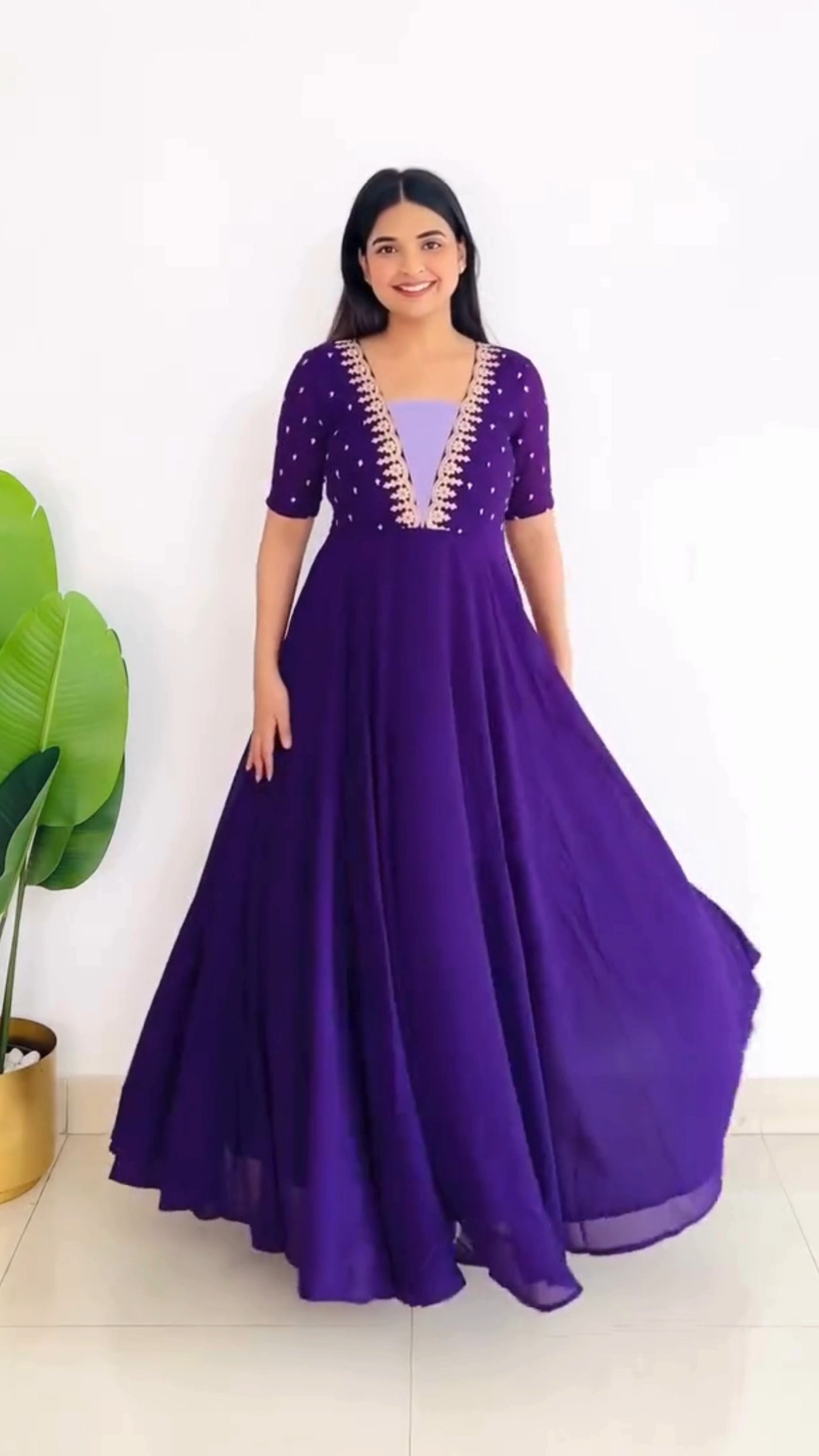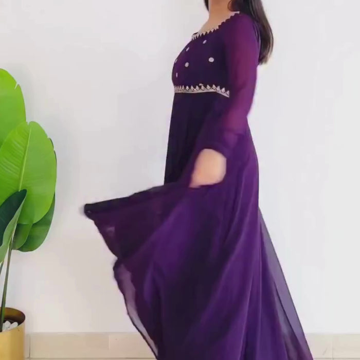 • Occasion: This type of purple embroidered gown is perfect for formal occasions, parties, weddings, and festivals.